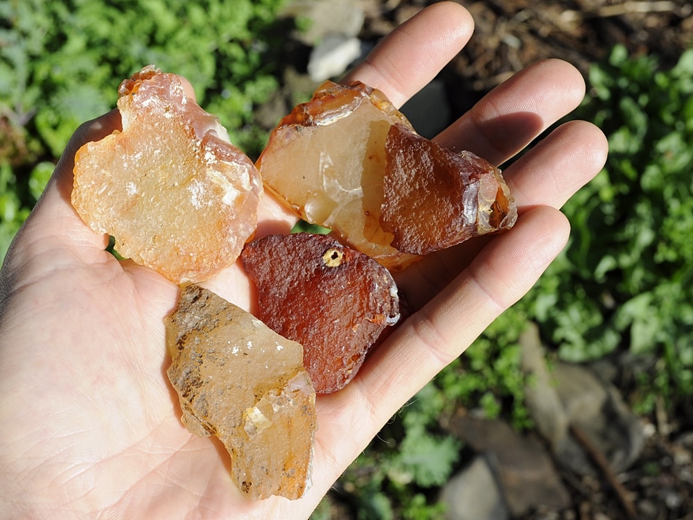 Chalcedony is a form of silica which is found in a lot of countries including New Zealand. It has different varieties based on the colour and pattern. When chalcedony is yellow/orange it is called Carnelian. Our chalcedony and carnelian is often from the Coromandel.