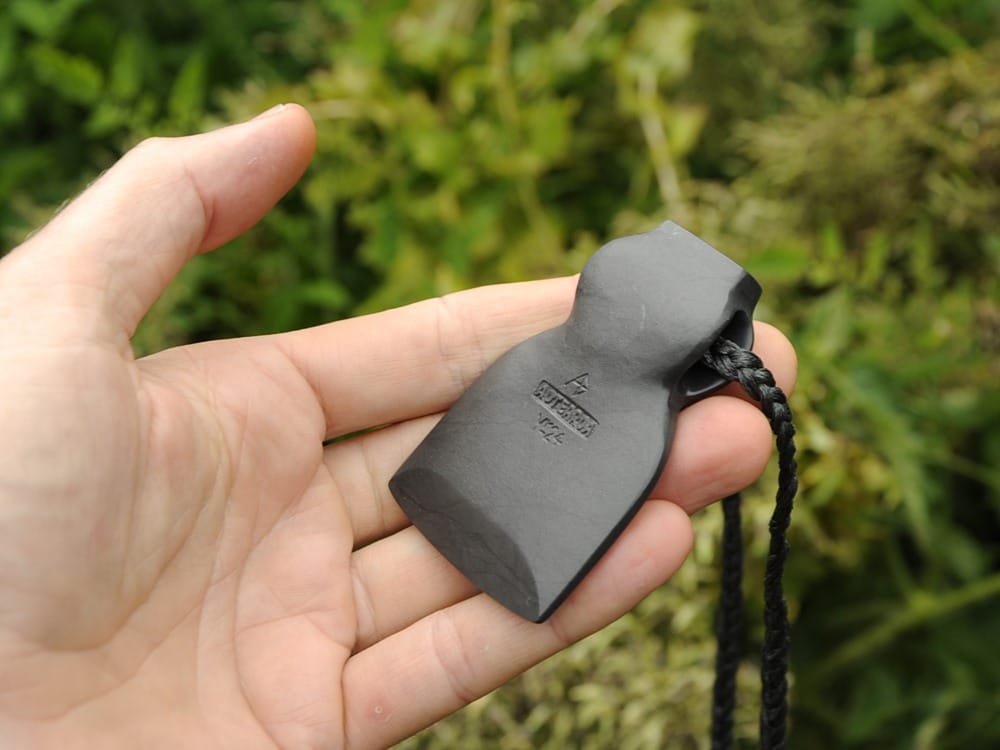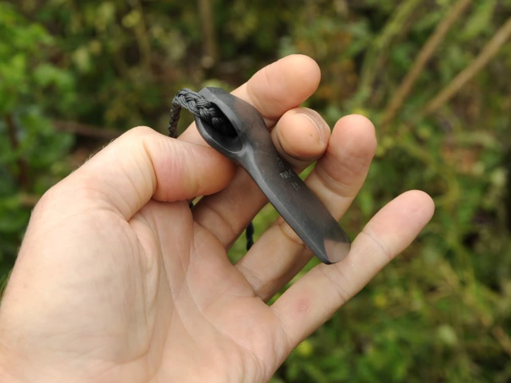 This argillite carving is based on a English trade axe. The originals would have been stamped with the companies name/symbol, the town/country and the model #. I’ve replaced this with my mark, Aotearoa and the year.