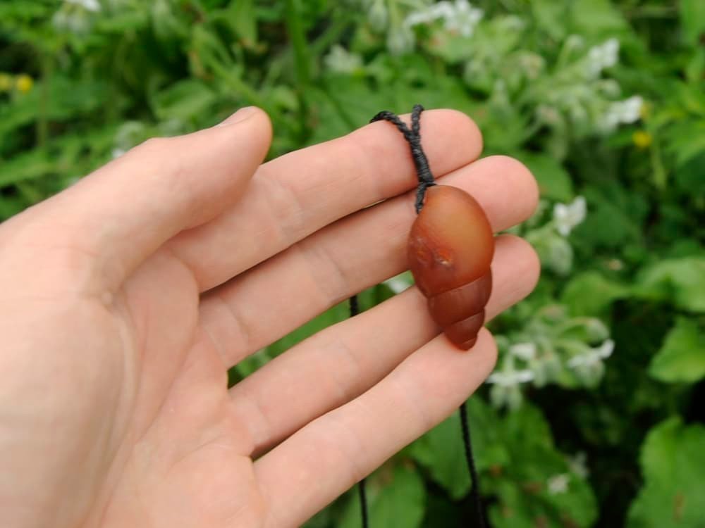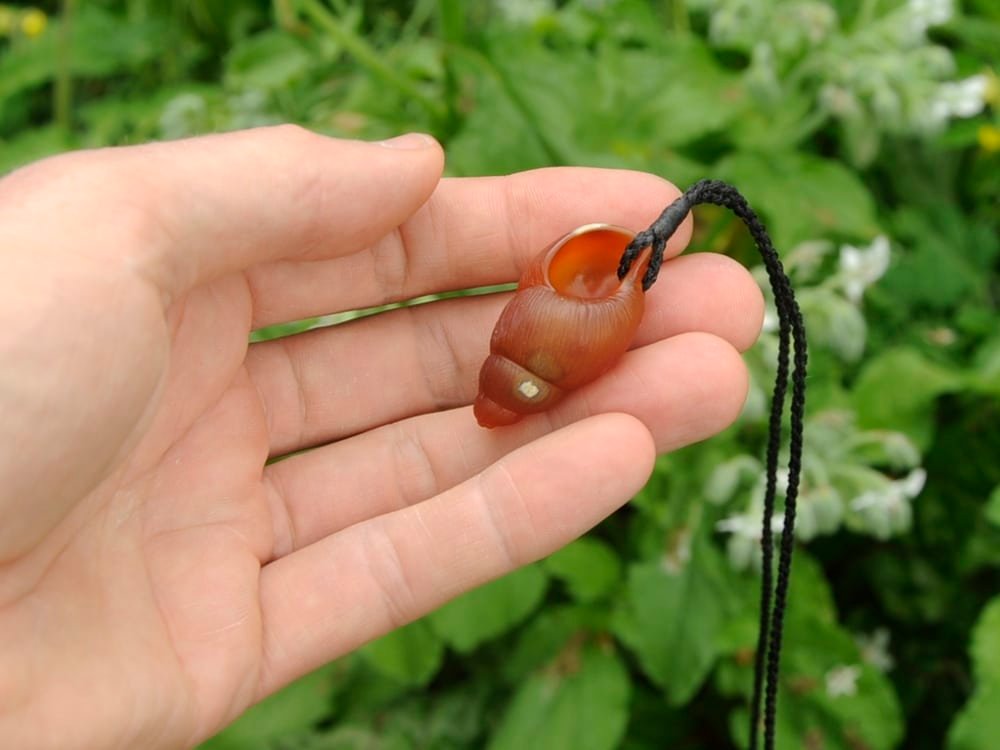 I carved this flax snail / pūpūharakeke (Placostylus hongii) shell out of a beautiful piece of NZ carnelian.