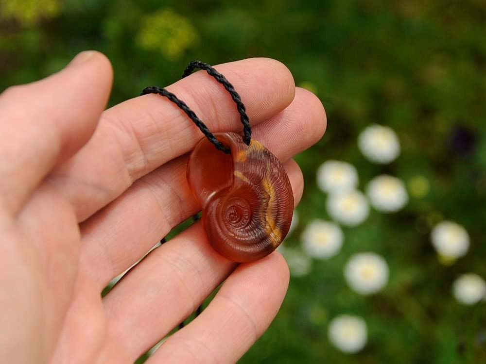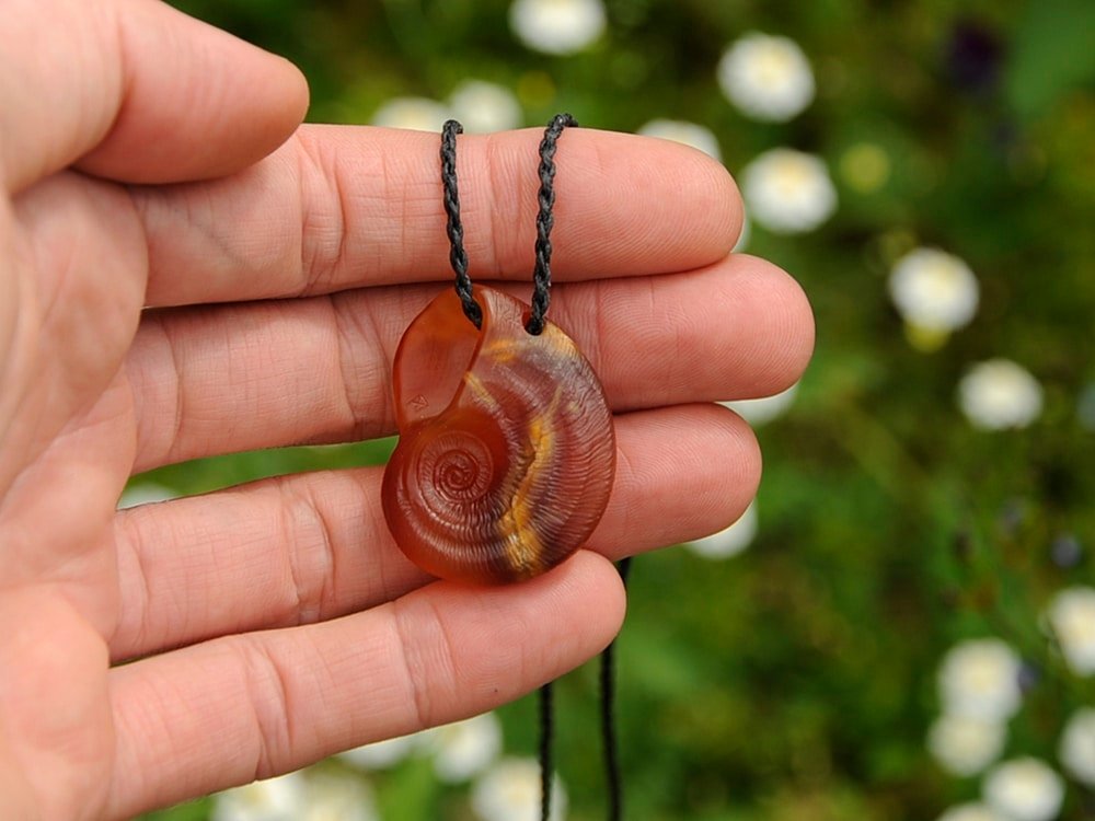 I carved this kauri snail shell out of a beautiful piece of NZ carnelian. Carnelian is such an amazing stone, beautiful in the sunlight.