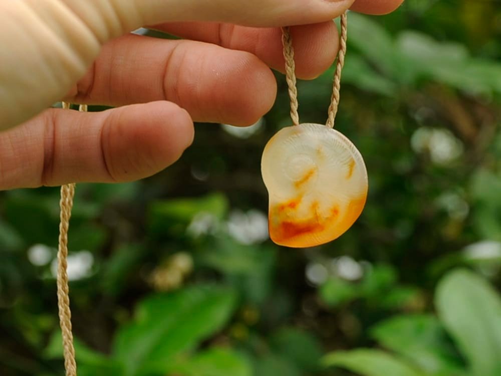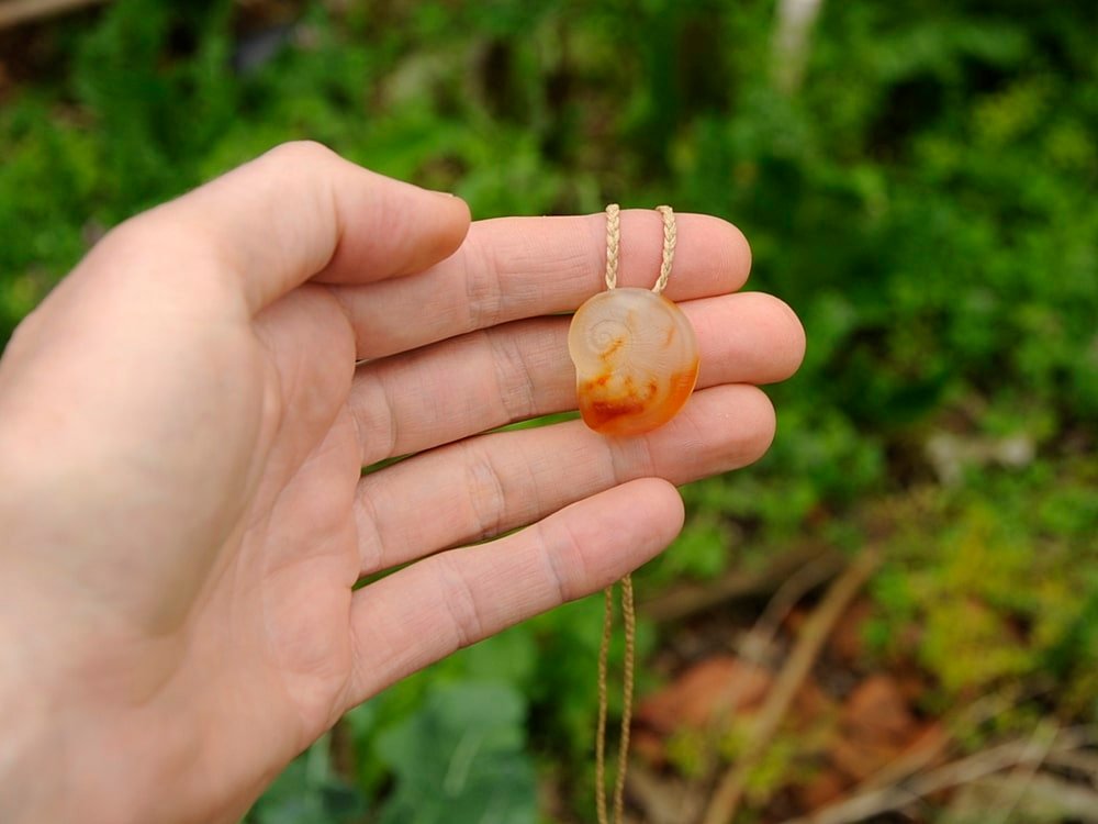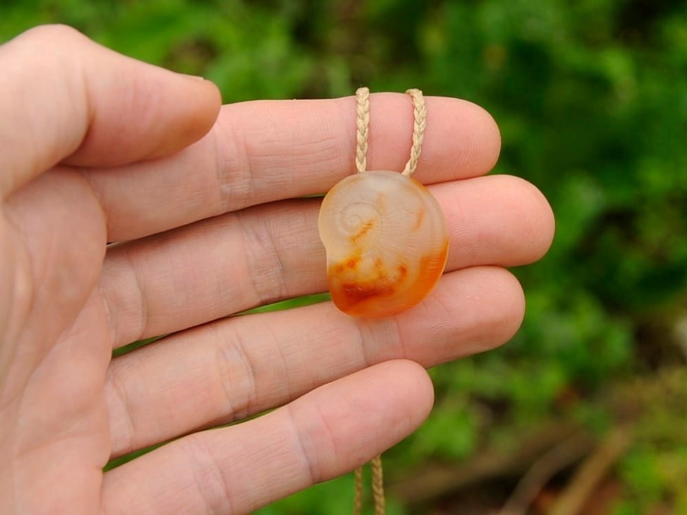 I carved this kauri snail shell out of a beautiful piece of NZ carnelian. Carnelian is such an amazing stone, beautiful in the sunlight.