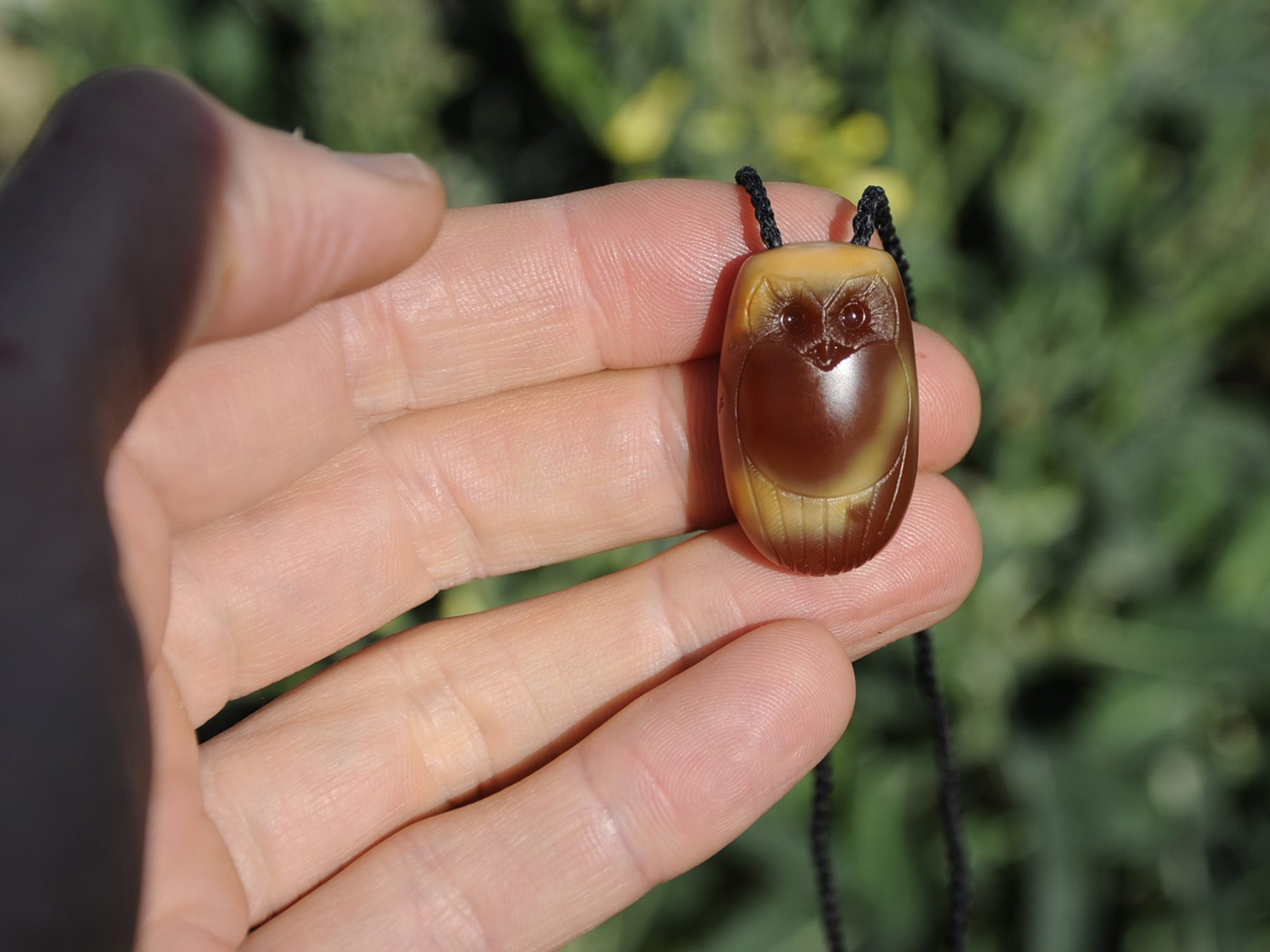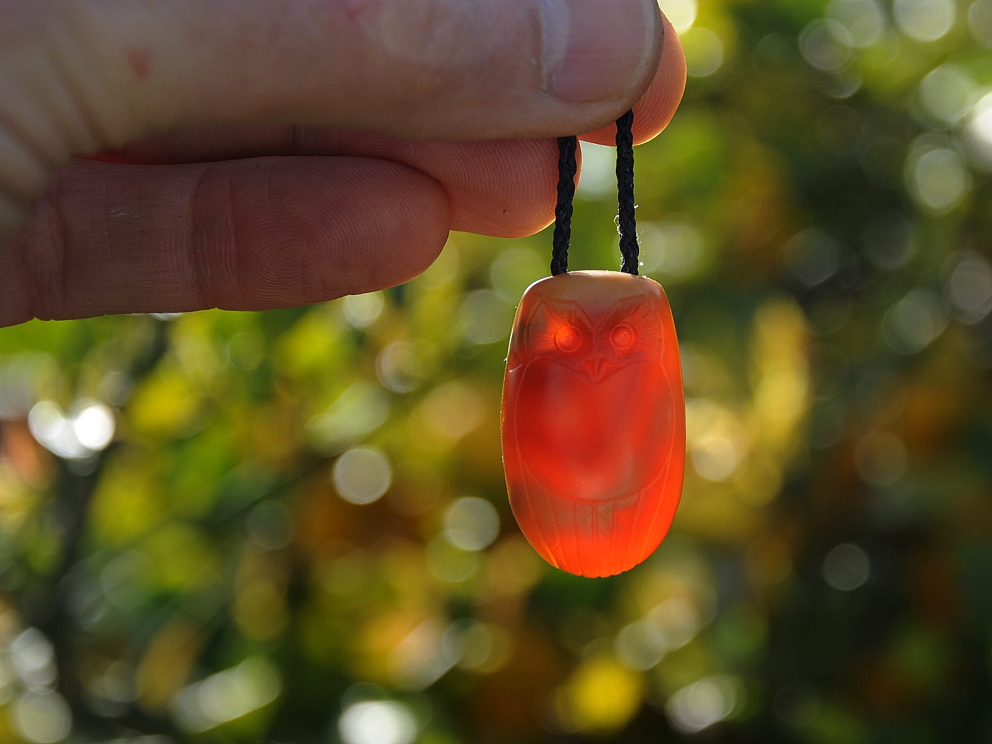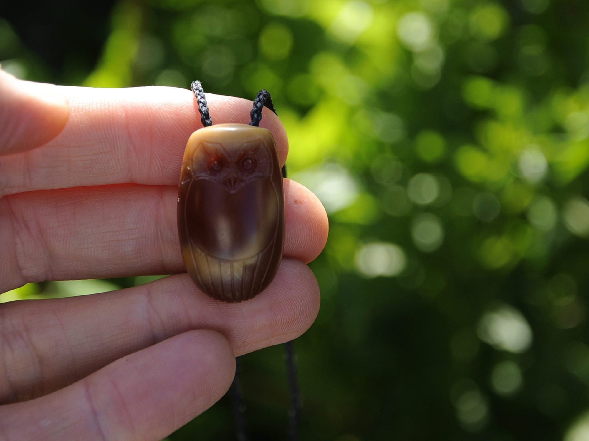 This sculpture/pendant is of a ruru / morkpork. Wonderfully translucent. Loves the sunlight.