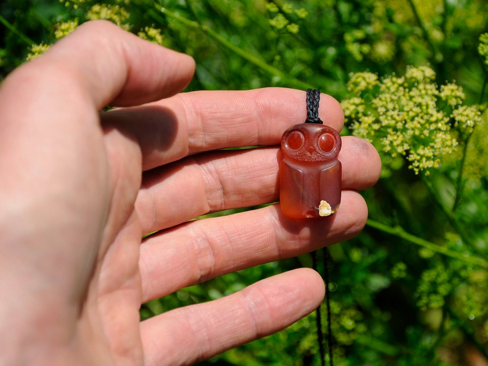 This ruru is carved in my earlier style. It is #8 of that design.  Wonderfully translucent. Loves the sunlight.