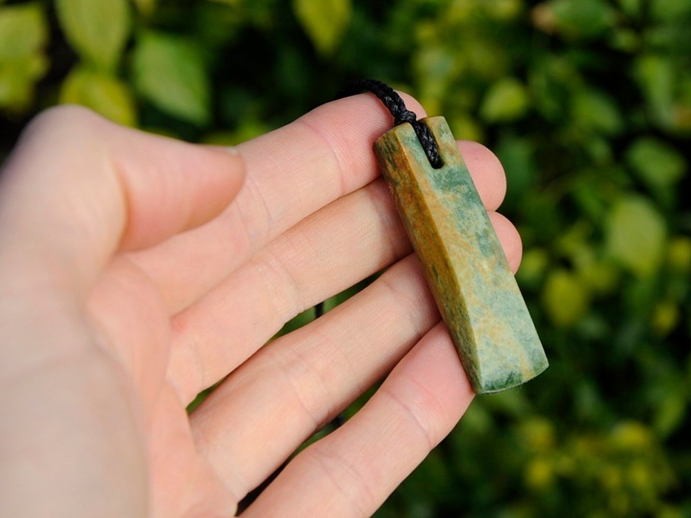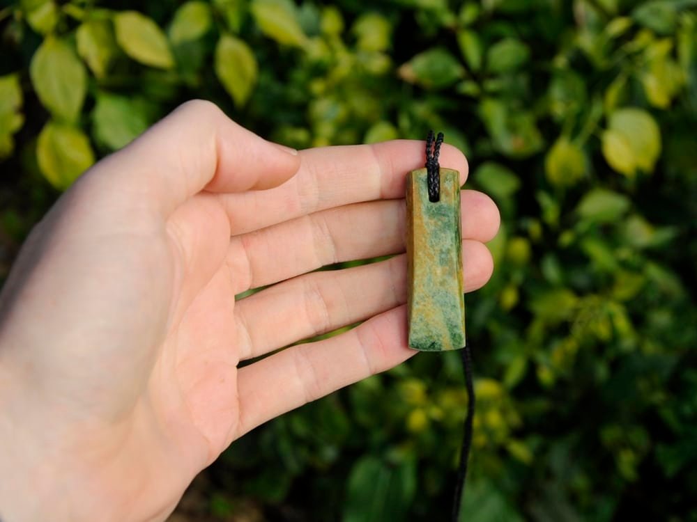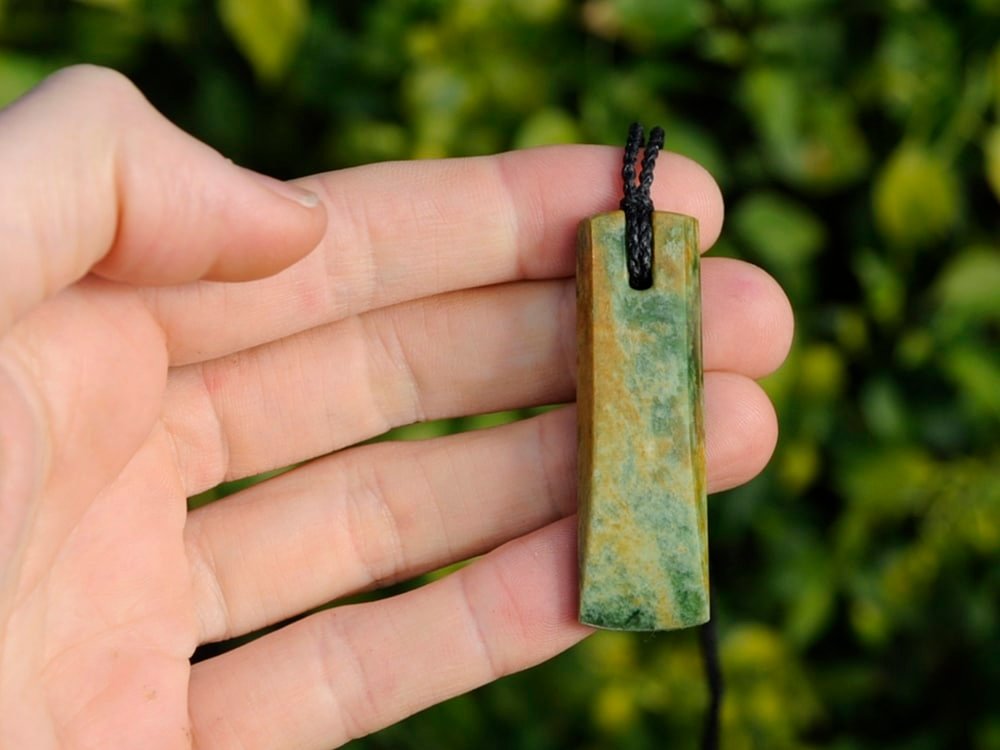 This toki is carved out of a light green pounamu with a strong flower going through it.