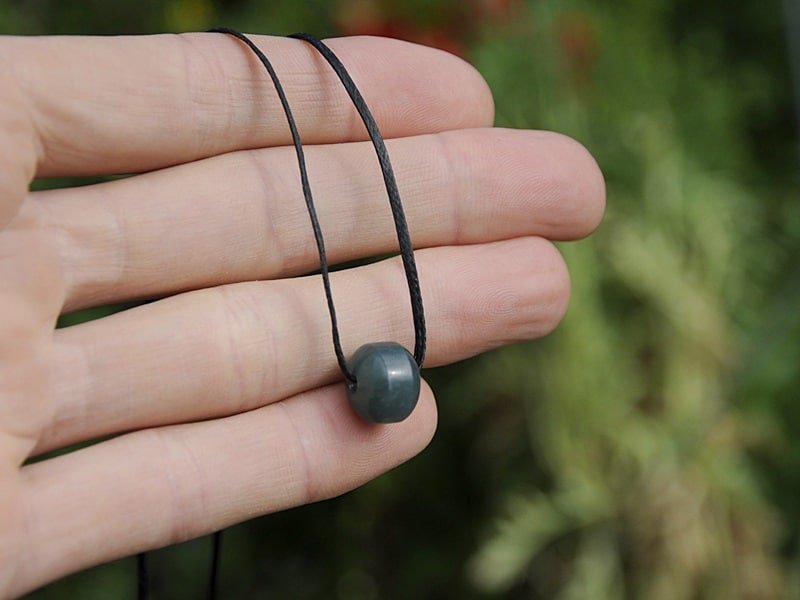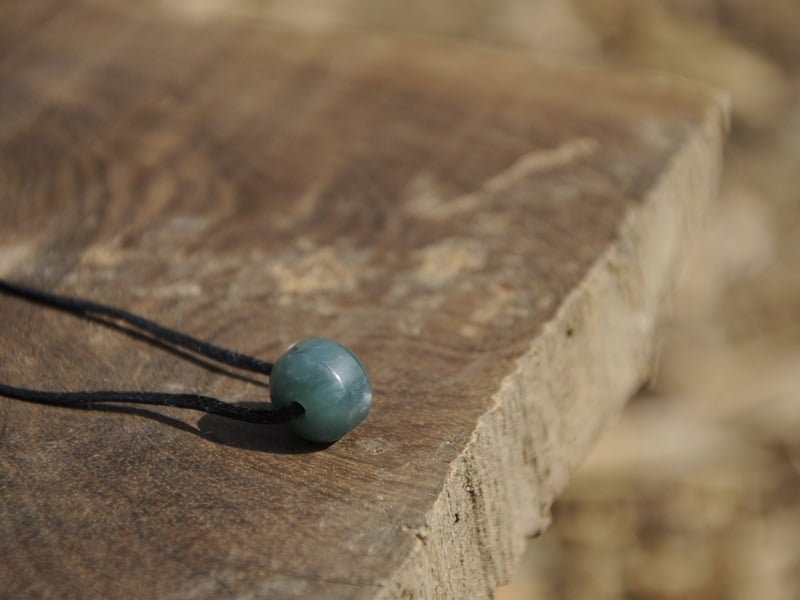 A single bead made out of a high quality blue Guatemalan jadeite bead.