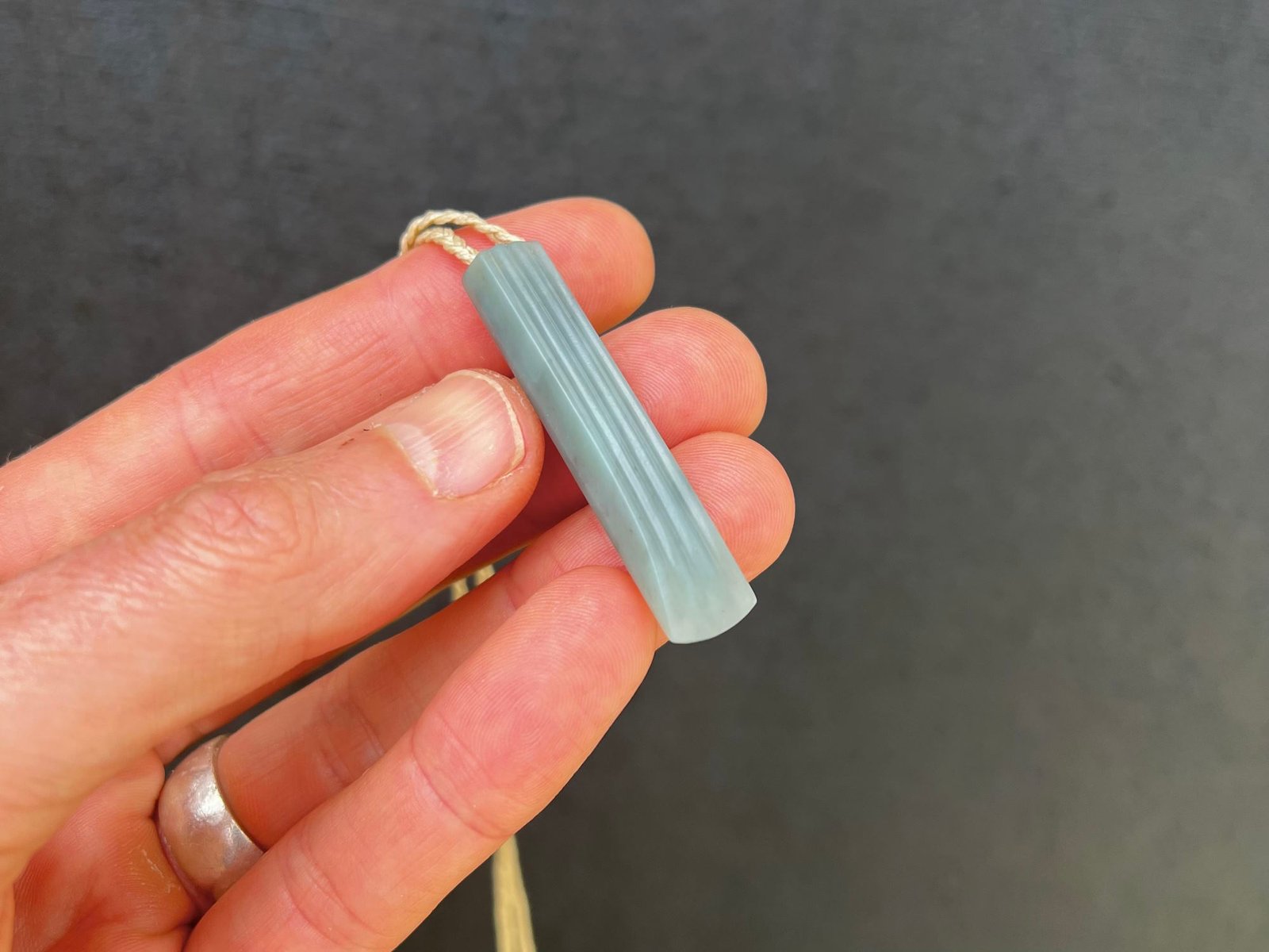 This beautiful pounamu is from the top of the South Island. It’s a beautiful swirly inanga with a light olive glow when backlit.