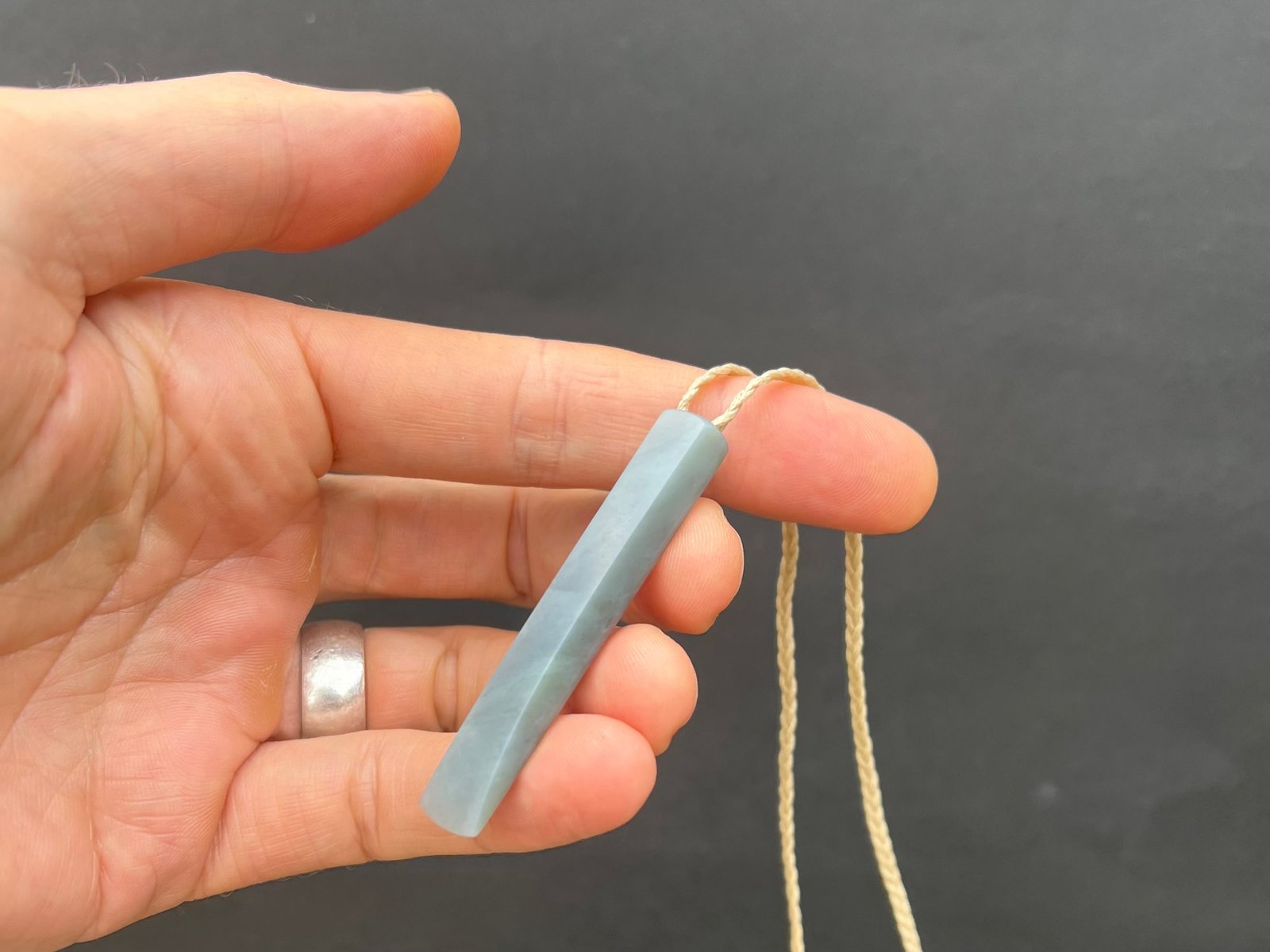 This beautiful pounamu is from the top of the South Island. It’s a beautiful swirly inanga with a light olive glow when backlit.