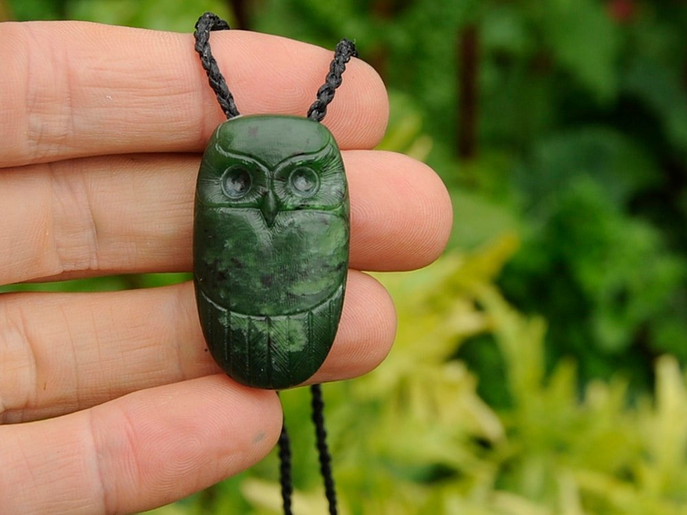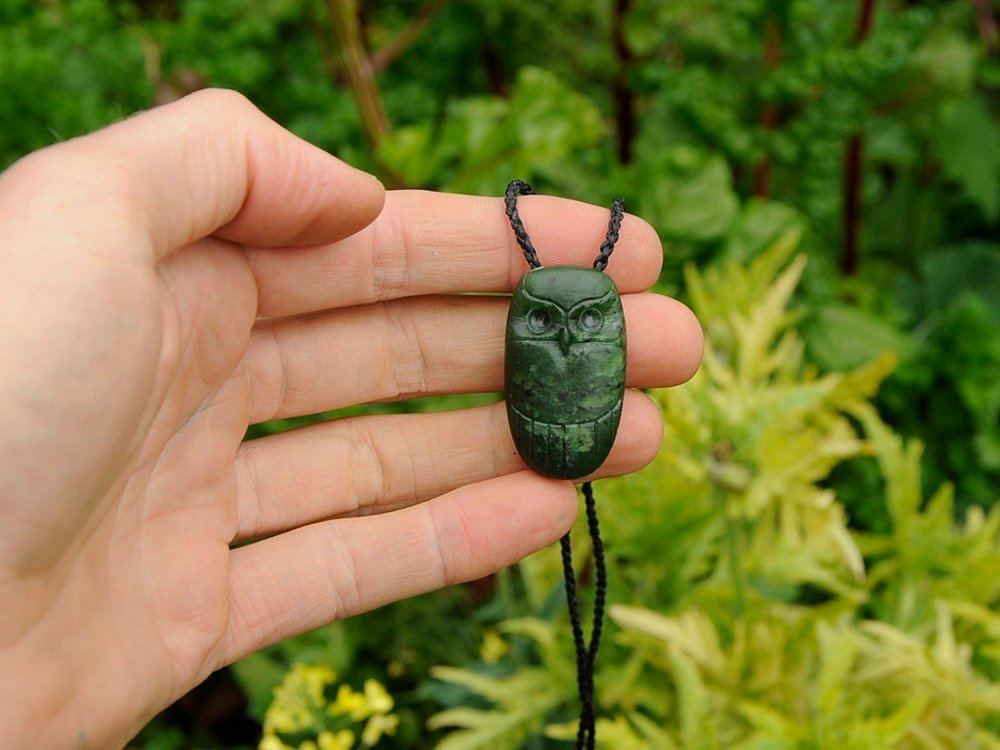I’ve carved this Ruru / Morepork out of a translucent kawakawa Pounamu.