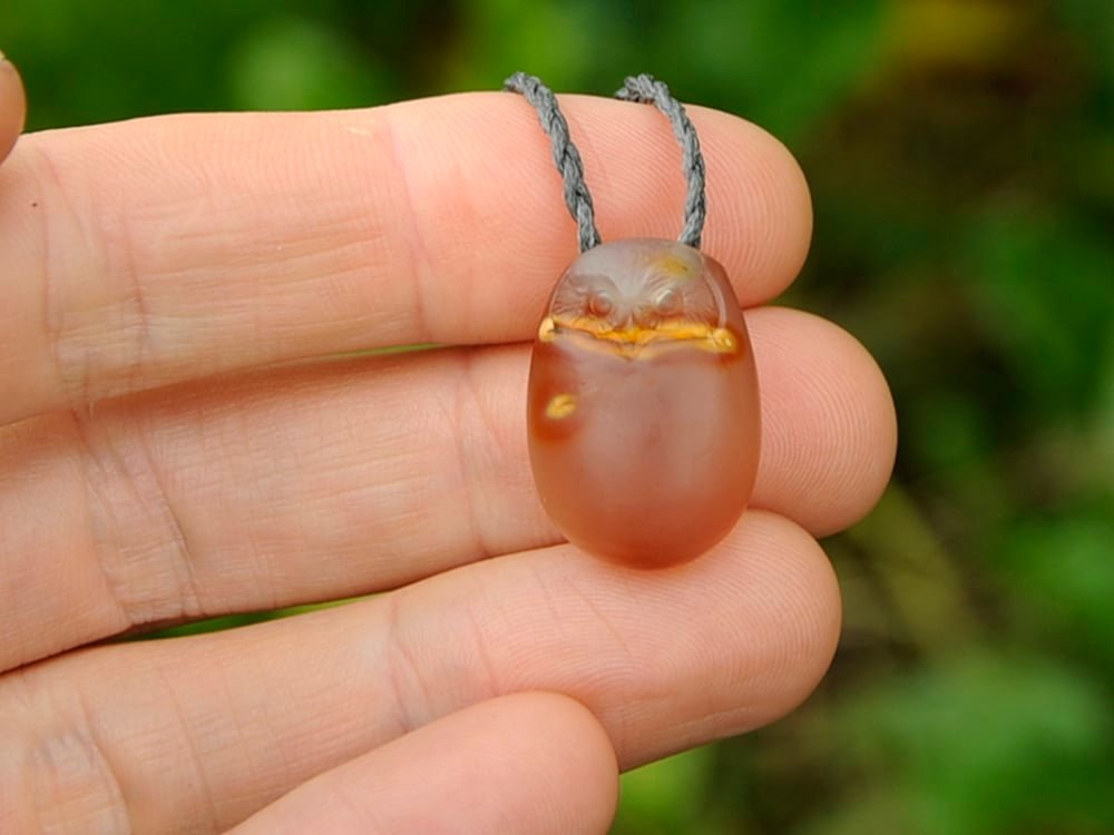 I carved this little ruru / morepork out of a beautiful piece of NZ striped Chalcedony. It was a wonderful glow in sunlight.