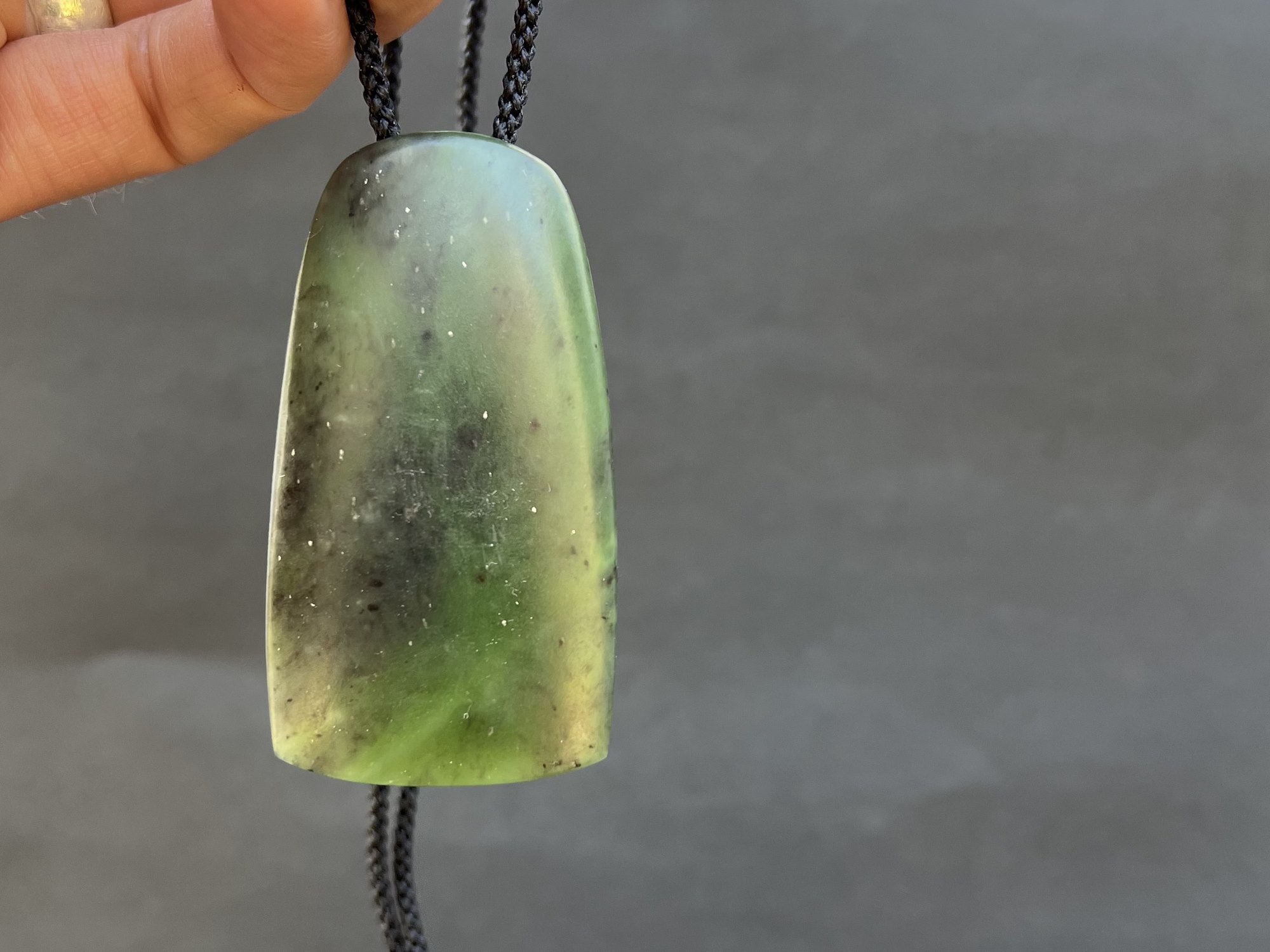 Beautiful, rich South Westland pounamu. Translucent, purple inclusions.