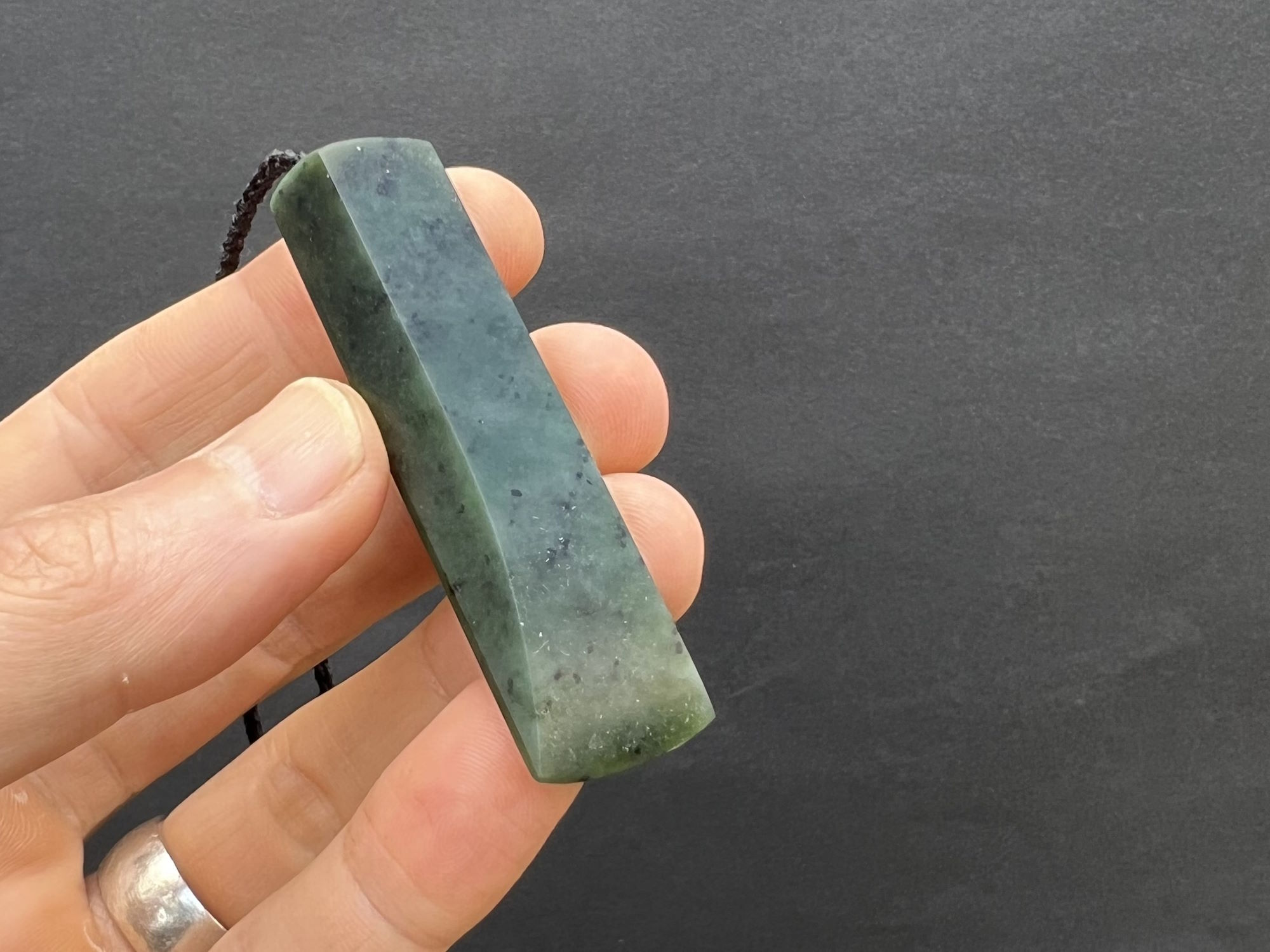 This beautiful pounamu is from Takaka at the top of the South Island. It’s a nice green kawakawa