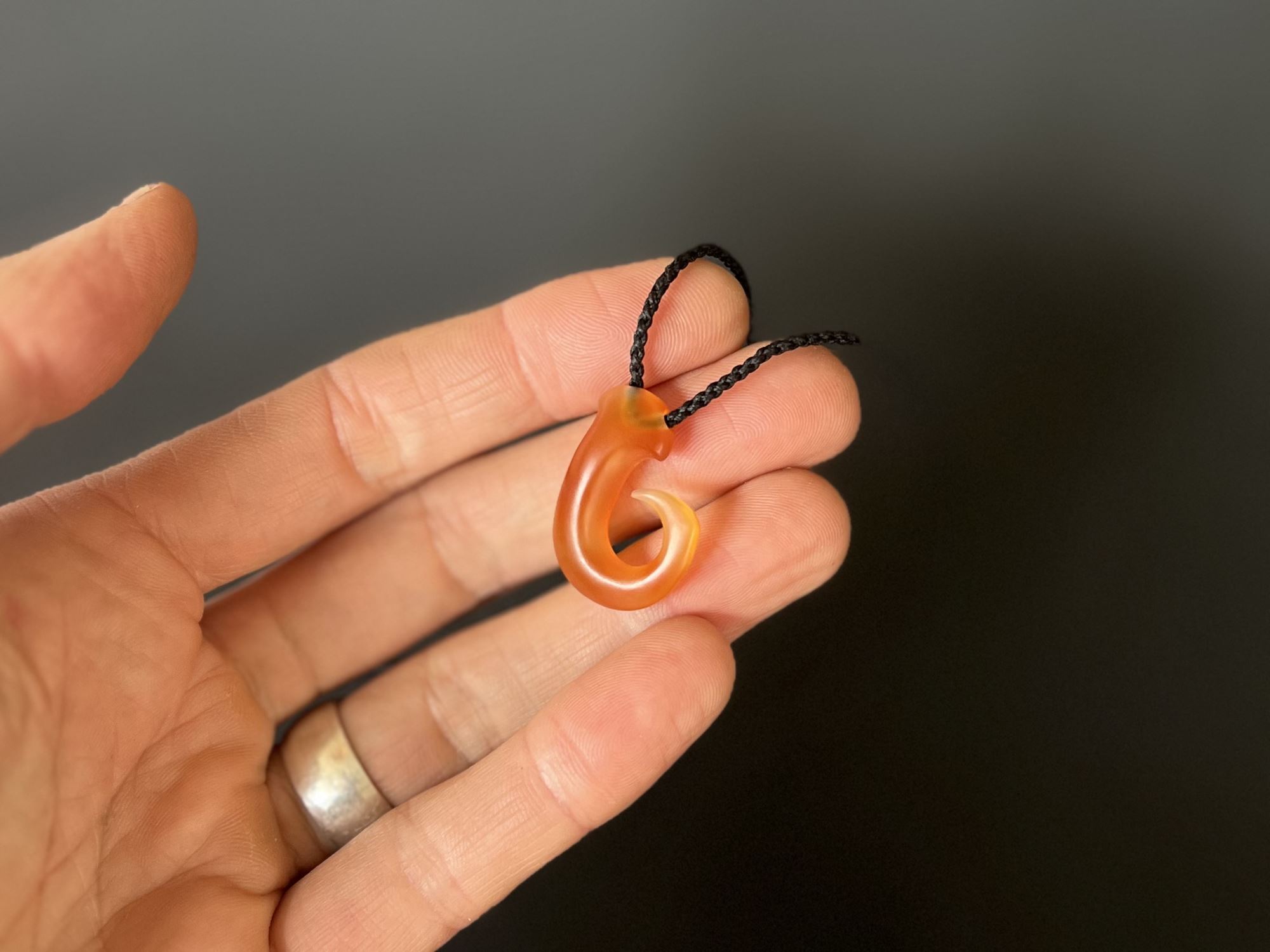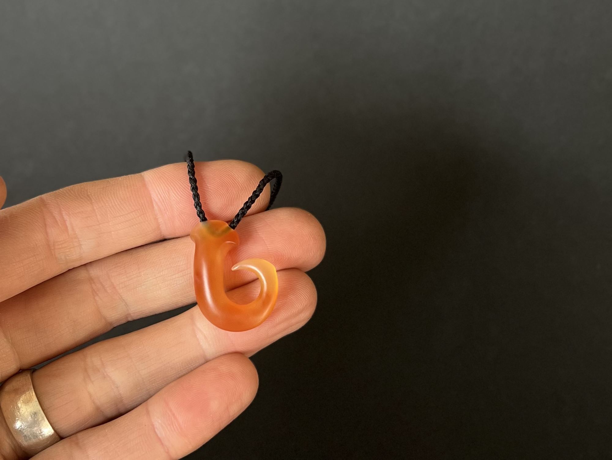 Small Carnelian Hook$445 Baby hammerhead – carnelian hook Material – Coromandel Carnelian Size – 30mm high Hand plaited adjustable black cord Shipping is free within NZ / Australia. For all other locations, see our shipping page. In stock Small Carnelian Hook quantity Add to cart Related products Carnelian Kauri Snail Shell $510 Antler Kauri Snail Shell $480 Commission a Bead Strand Carnelian bat / pekapeka sculpture $580