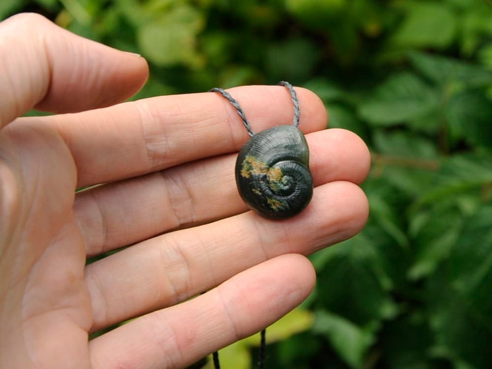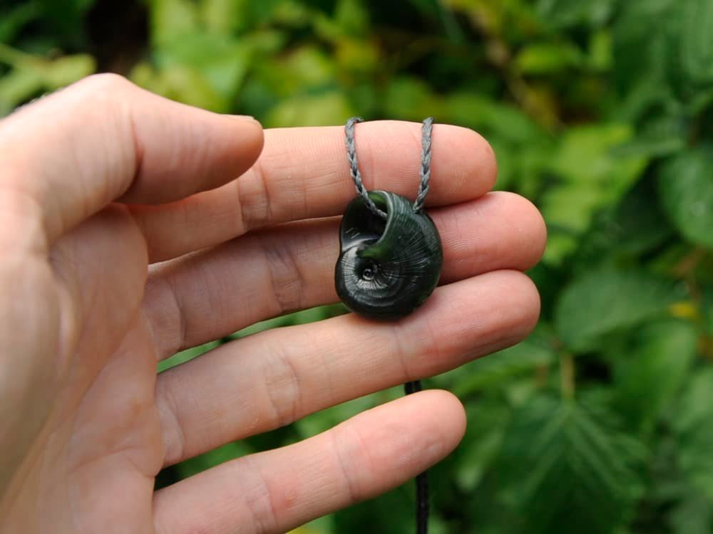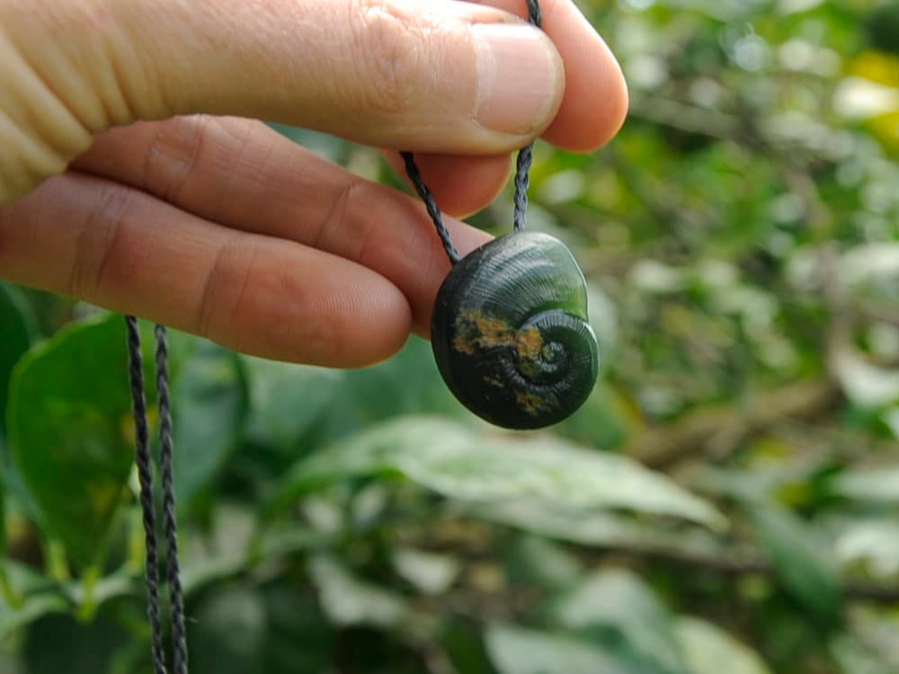 Small flower pounamu kauri snail shell.