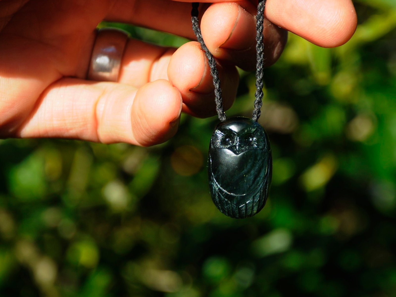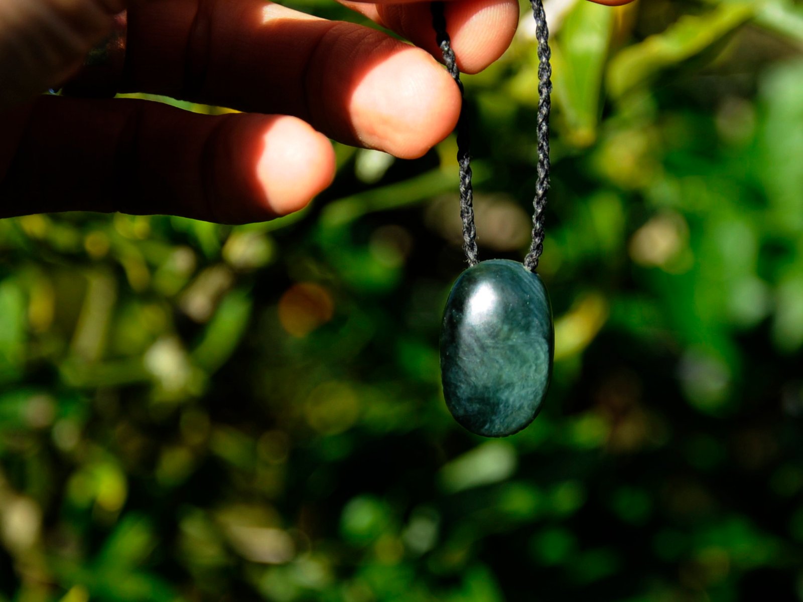 Tangiwai / bowenite is a clear or translucent variety of serpentine. The stone looks quite dark but has chatoyant bands going through it so looks amazing when it is rotated in sunlight (see photos)
