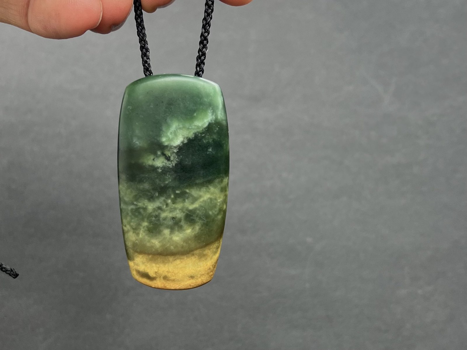 This pounamu is a beautiful range of colours. The yellow is the outside of the stone which changes as it goes into the darker heart.